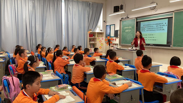 優(yōu)秀骨干教師譚紅梅老師激情彭拜地講解古希臘著名神話故事《普羅米修斯》,四(4)班的學生們?nèi)褙炞⒌馗形蛑适轮械娜松腔?。?yōu)秀骨干教師杜娟老師和五(1)班的同學們一起開展“標點符號之旅”游戲,將語文知識貫穿于故事之中,寓教于樂,讓人印象深刻!二(3)班的語文課堂上,優(yōu)秀青年教師童心和學生們一起汲取知識,滋養(yǎng)心靈的美好!優(yōu)秀骨干教師劉美娟老師在四(5)班執(zhí)教《My body》,通過游戲與學生們現(xiàn)場互動,課堂靈動活潑,充滿童趣!優(yōu)秀骨干教師吳小梅老師在五(9)班的課堂上,帶領(lǐng)孩子們認識《Map of China》,從小認識祖國各地,長大建設(shè)大好河山!家長們則安靜地坐在教室后方,和學生們一起聆聽并參與課堂。