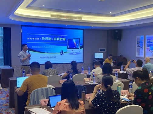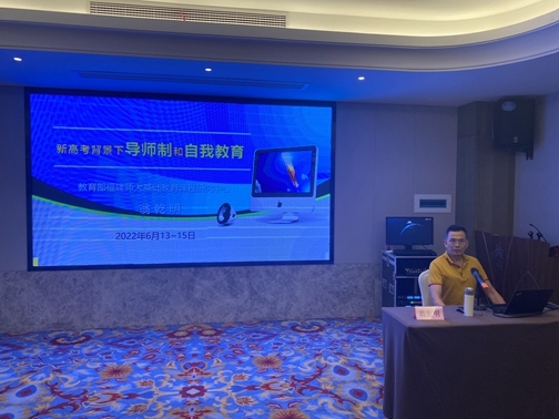 第二項議程:由教育部福建師大基礎(chǔ)教育課程研究中心副主任、特級教師翁乾明主講標題為《新高考背景下的導(dǎo)師制和自我教育》的專題講座。翁主任曾任福建師大附屬中學(xué)校長,既有豐富的一線教學(xué)經(jīng)驗,又有高屋建瓴的理論儲備。講座上,翁主任首先介紹了“導(dǎo)師制”,他說導(dǎo)師制是在新高考背景下為加強對學(xué)生心理成長的指導(dǎo)而提出的,導(dǎo)師制有三項硬任務(wù):學(xué)習(xí)成長指導(dǎo)、生涯規(guī)劃指導(dǎo)、身心發(fā)展指導(dǎo),完成任務(wù)最重要的方法是對學(xué)生平等對待。接著,翁主任重點談對學(xué)生的自我教育,自我教育是基于自我覺醒、兼顧社會需要、立足自覺自律、認識自己、喚醒自己、改變自己、經(jīng)營自己,成就自己的過程。翁主任強調(diào)教育最重要的是要解決根的問題,而教育的“根“就是促進學(xué)生精神成長。啟示老師要加強自我教育,要努力做個“人中人”,永遠與學(xué)生一同成長,要活出意義,活出價值!翁主任風(fēng)趣幽默、深入淺出,在場教師都受益匪淺。