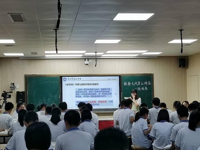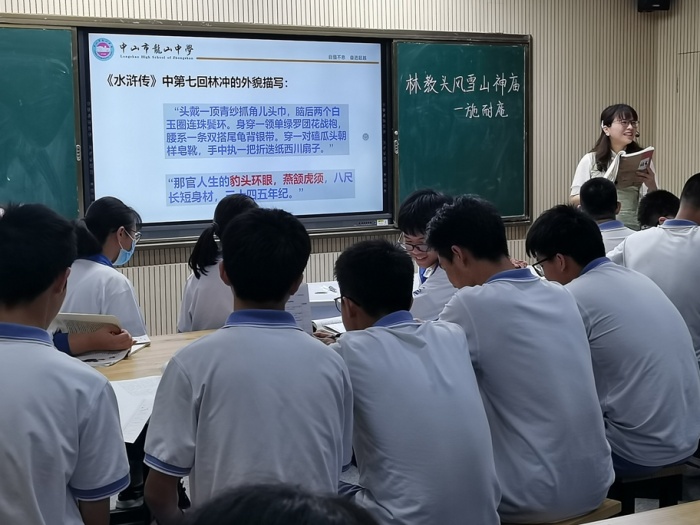 2022年5月20日,中山市龍山中學(xué)語文科組開展科組教研活動,由中山市高中教研中心組成員楊宇燕老師執(zhí)教了一堂探究性學(xué)習(xí)設(shè)計(jì)感十足的示范課《林教頭風(fēng)雪山神廟》。吳明紅校長深入課堂,聚焦一線,和語文科組教師一起聽課評課,全面了解并掌握課堂整體情況,對楊宇燕和語文科組對課堂的教研和探究能力和成果給予了高度評價。