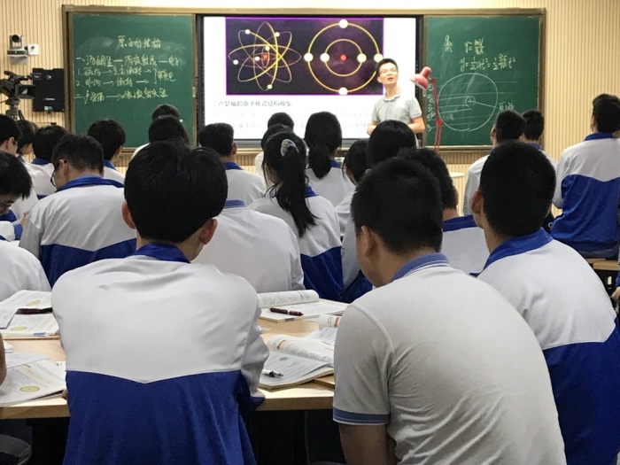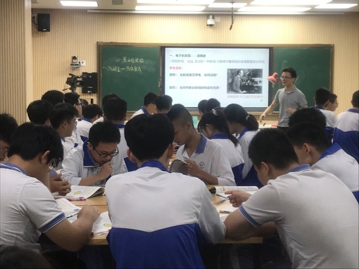 上午第四節(jié),高二年級(jí)備課組長(zhǎng)張慶生老師在錄播室給高二(2)班學(xué)生上了一節(jié)主題為《原子結(jié)構(gòu)》的公開(kāi)課。張老師通過(guò)手機(jī)投屏的方式向?qū)W生清晰地展示了陰極射線在磁場(chǎng)和電場(chǎng)中的偏轉(zhuǎn)情況,引導(dǎo)學(xué)生分析陰極射線的本質(zhì),提出原子可分的觀點(diǎn),而后引導(dǎo)學(xué)生思考原子內(nèi)部的正、負(fù)電和質(zhì)量的分布情況:由猜想模型到理論分析,由實(shí)驗(yàn)觀測(cè)到推翻猜想,由建立新的模型到合理解釋實(shí)驗(yàn)現(xiàn)象,環(huán)環(huán)相扣,嚴(yán)絲合縫,尤其是多次三維模擬動(dòng)畫的展示,對(duì)推動(dòng)課堂的進(jìn)程、高效達(dá)到預(yù)設(shè)目標(biāo)提供了極大的幫助。張老師對(duì)信息技術(shù)手段的嫻熟應(yīng)用,豐富了課堂教學(xué)的方式,激發(fā)了學(xué)生學(xué)習(xí)的興趣,大幅度提升了教學(xué)效率,達(dá)到極好的效果。