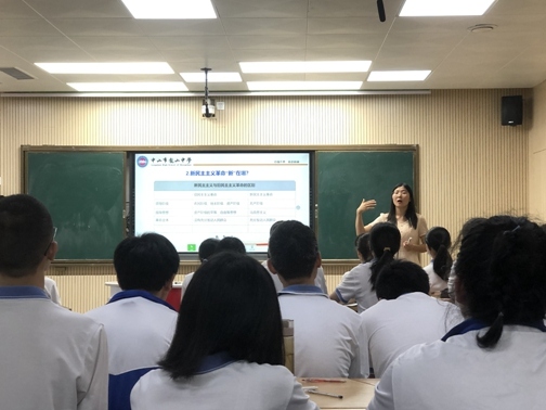 本次課程由課程建設(shè)第二小組的皮益輝老師進(jìn)行示范。她通過議題形式,把內(nèi)容設(shè)置為四個部分,分別是近代中國的社會性質(zhì)、社會主要矛盾和人民的歷史任務(wù);近代中國進(jìn)行了哪些改變悲慘命運的嘗試和斗爭;新民主主義“新”在哪,以及新中國成立后,中國即將走向何方。通過四個議題層層論證,最后得出社會主義是近代中國歷史發(fā)展的必然的結(jié)論。課堂上皮老師運用現(xiàn)代化教學(xué)手段精心設(shè)計教學(xué)活動,學(xué)生積極參與,氣氛活躍,課堂節(jié)奏張弛有度,在學(xué)生發(fā)言后,皮老師能適時引導(dǎo)、總結(jié)歸納,帶領(lǐng)學(xué)生通過思考得出結(jié)論,體現(xiàn)了她充分調(diào)動學(xué)生思維能力和水平。整節(jié)課邏輯清晰,議題環(huán)環(huán)相扣,在活動中生成了知識、提高了能力、培養(yǎng)了素養(yǎng)、落實了課程標(biāo)準(zhǔn)。