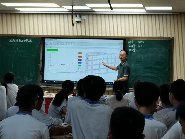 首先,龍山中學(xué)陳鍇老師在錄播室開展《指數(shù)函數(shù)的概念》的課程教學(xué)。課堂上,陳老師以新課標為依據(jù),重在立德樹人、強化能力關(guān)鍵點上下功夫,鼓勵學(xué)生大膽說出自己的想法。在學(xué)生解題的瓶頸環(huán)節(jié),陳老師循循善誘,能夠恰當?shù)囊龑?dǎo),使學(xué)生茅塞頓開,表現(xiàn)出了扎實的數(shù)學(xué)功底。在接下來的評課環(huán)節(jié),趙勇首先對陳鍇老師的課給予了高度的評價。隨后他就如何提高教師的專業(yè)素養(yǎng)問題給予了指導(dǎo)。他認為課堂一定要注重基礎(chǔ)性、突出綜合性、聚焦應(yīng)用性,要在加強知識鏈接上下功夫,要在深化關(guān)鍵能力考點上下功夫。