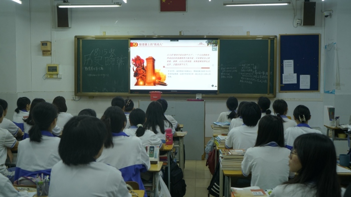 9月1日晚7點(diǎn),中山市龍山中學(xué)黨委書記、校長(zhǎng)吳明紅在校園電視臺(tái)以“高舉旗幟·成就夢(mèng)想”為主題,為全校師生呈現(xiàn)了一節(jié)鼓舞人心、催人奮進(jìn)的思政課。吳明紅表示,在黨的二十大即將召開之際,龍山中學(xué)全體師生,要感黨恩,聽黨話,跟黨走,唱響中國(guó)特色社會(huì)主義的主旋律,謳歌黨的豐功偉績(jī)。