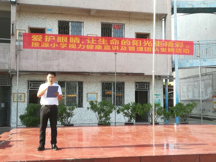 活動(dòng)在接源小學(xué)教導(dǎo)主任楊順球的演講中開始,他演講的題目是“愛護(hù)眼睛,保護(hù)視力”,強(qiáng)調(diào)眼睛對(duì)我們的重要性,呼吁大家愛護(hù)眼睛,保護(hù)視力,并提出保護(hù)視力的具體措施與建議。
