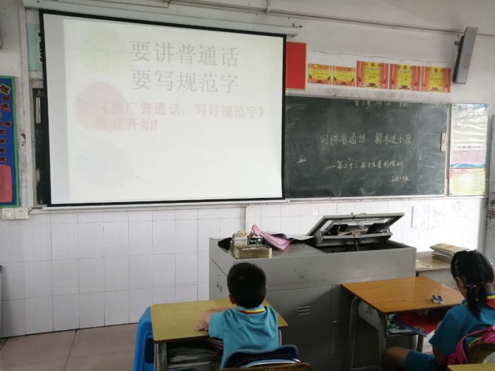 同時(shí),繼續(xù)開展推普手抄報(bào)的制作,午間朗讀經(jīng)典文字,練字等活動(dòng),并且利用了墻報(bào)等宣傳普通話。