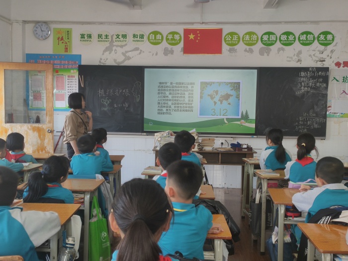 同學(xué)們在主題班隊課上觀看了植樹節(jié)宣傳片“帶著地球去遠(yuǎn)方”。地球是我們生存的地方,我們要好好的保護(hù)地球,保護(hù)自己的家園,同時學(xué)生在影片中感受到了大自然的美麗。隨后通過班主任的介紹同學(xué)們了解了植樹節(jié)的由來,知道了如果沒有了樹,我們的地球會變成什么樣?帶著種種警示和問題,讓學(xué)生們提高愛護(hù)環(huán)境、植樹造林的意識。