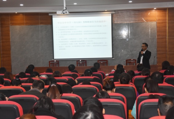 為進一步貫徹落實省、市關于加強師德師風建設工作要求,提升教師職業(yè)道德,規(guī)范教師從教行為,12月3日,中山市民眾錦標學校組織全體教師學習了《中山市中小學(幼兒園)教師職業(yè)行為負面清單(試行)》和《教育部公開曝光第八批8起違反教師職業(yè)行為十項準則典型案例》。