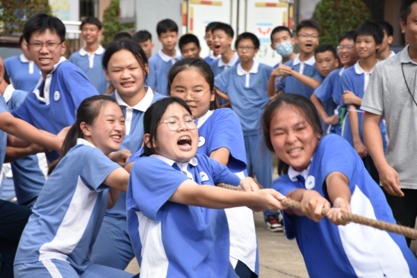 為豐富校園文化生活,增強(qiáng)班級凝聚力,提高學(xué)生團(tuán)隊(duì)合作和堅(jiān)韌不拔的精神,我校八、九年級還開展了拔河比賽。當(dāng)比賽的哨聲響起,只見參賽的同學(xué)們緊握長繩,鉚足了勁拼命拼命往后拉。未參加的同學(xué)自發(fā)組成拉拉隊(duì)為比賽隊(duì)員吶喊加油,哨子聲、吶喊聲此起彼伏,現(xiàn)場激烈的比賽將整個(gè)活動(dòng)推到高潮!比賽過程中,各班參賽隊(duì)員努力拼搏,無論是場上還是場下,氣氛都異常激烈?,F(xiàn)場拉拉隊(duì)員個(gè)個(gè)熱情高漲吶喊助威給比賽增添了一抹亮色,每一聲吶喊都帶來一股力量。經(jīng)過一番激烈的角逐,同學(xué)們?yōu)⑾铝撕顾?,收獲了希望 。拔河比賽提高了同學(xué)們的團(tuán)隊(duì)合作意識和堅(jiān)韌不拔的精神。尤其是在勝負(fù)難分的時(shí)刻,大家毫不退卻,咬緊牙關(guān),堅(jiān)持到底。賽場上的同學(xué)們個(gè)個(gè)斗志昂揚(yáng),他們頑強(qiáng)的毅力與拼搏的精神讓每一個(gè)人感動(dòng)。希望他們能夠繼續(xù)發(fā)揚(yáng)堅(jiān)毅的精神,以飽滿的熱情備戰(zhàn)期末考試。