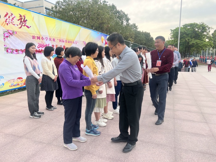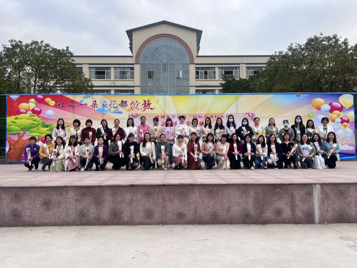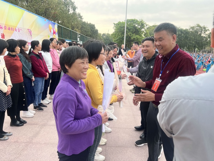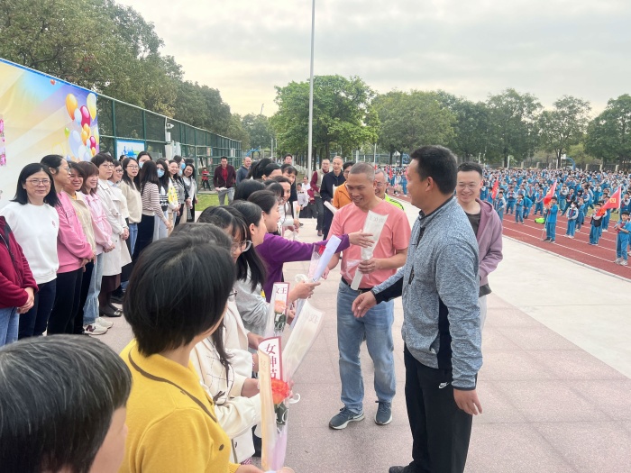 最后,邀請全體女教師上臺(tái),由學(xué)校的男教師手捧鮮花送給每一位女教師,并祝她們節(jié)日愉快!一支支鮮艷的花朵映襯著一張張幸福的笑臉,和諧溫馨的氣氛充盈著整個(gè)校園。