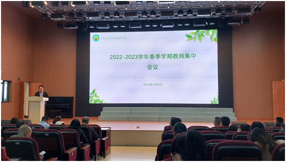 新年的鞭炮聲還在耳畔回響,親人的祝福還在耳邊蕩漾,在這樹枝吐翠,乍暖還寒的立春時節(jié),2023年2月4日上午9點,浪網(wǎng)小學(xué)全體教師在階梯教室召開了新學(xué)期教師工作會議,翻開了新學(xué)期的扉頁。會議由陳平校長主持。