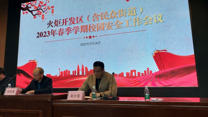 為加強(qiáng)校園安全工作,為學(xué)生們創(chuàng)造一個(gè)安全、和諧的校園環(huán)境,提高學(xué)校師生的安全防護(hù)意識(shí),使學(xué)生健康、快樂(lè)、平安地成長(zhǎng),火炬開(kāi)發(fā)區(qū)(含民眾街道)2023年春季學(xué)期校園安全工作會(huì)議于2023年2月14日下午在浪網(wǎng)小學(xué)階梯室舉行。出席本次會(huì)議的有開(kāi)發(fā)區(qū)教育事務(wù)指導(dǎo)中心領(lǐng)導(dǎo)、開(kāi)發(fā)區(qū)安全體衛(wèi)工作組成員、開(kāi)發(fā)區(qū)(含民眾街道)各中小學(xué)、幼兒園分管安全工作的副校長(zhǎng)(副園長(zhǎng))。