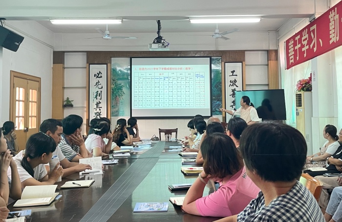 接著,數(shù)學(xué)科組長梁桂娣老師以期末檢測成績?yōu)橐罁?jù),結(jié)合學(xué)生平時(shí)學(xué)習(xí)情況,認(rèn)真分析學(xué)生目前存在的問題,并提出后續(xù)教學(xué)的改進(jìn)措施。梁老師就數(shù)學(xué)科組近三年各年級的數(shù)學(xué)考試成績與街道上其它的兄弟學(xué)校進(jìn)行對比分析,剖析出各年段、各班級目前的優(yōu)點(diǎn)與不足,并提出了:抓基礎(chǔ)、重計(jì)算、關(guān)注知識銜接、明確培優(yōu)輔差方法、提高課堂教學(xué)質(zhì)量共五點(diǎn)教學(xué)建議。對于口算題、筆算題如何進(jìn)行日常訓(xùn)練也給各位老師進(jìn)行了明確的方法指導(dǎo)。