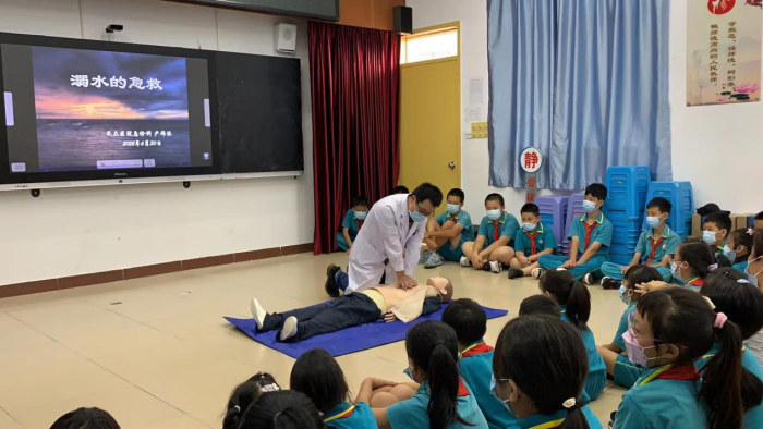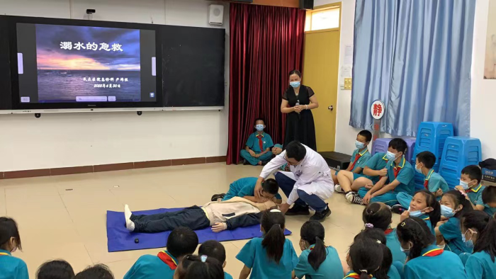 天氣逐漸炎熱,暑假即將到來(lái),青少年溺水事故進(jìn)入易發(fā)期、高發(fā)期。為進(jìn)一步做好校園防溺水宣傳教育工作,增強(qiáng)學(xué)生防溺水安全意識(shí),有效防范學(xué)生溺水事故的發(fā)生,2022年6月30日下午,民眾醫(yī)院急診科醫(yī)生在走進(jìn)育才小學(xué),為師生講解防溺水安全教育知識(shí)并現(xiàn)場(chǎng)進(jìn)行了培訓(xùn)。