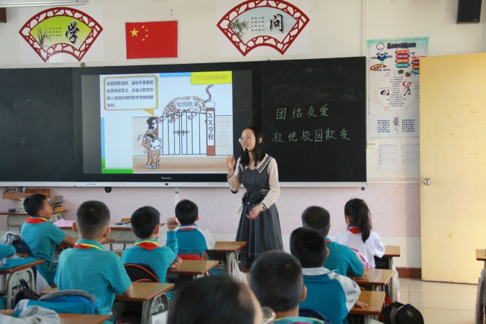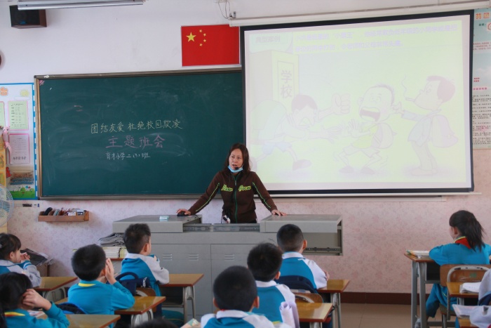 2020年 11月9日,育才小學(xué)馬超龍老師利用國旗下講話時(shí)間,結(jié)合了學(xué)校和學(xué)生的實(shí)際講述了校園暴力的危害性。他強(qiáng)調(diào),不管是言語上還是身體上的攻擊,都是校園欺凌、校園暴力行為。在校園暴力欺凌發(fā)生的時(shí)候,同學(xué)們要臨危不亂,及時(shí)報(bào)告,以法維權(quán)。接著,育才小學(xué)各班開展了以“團(tuán)結(jié)友愛,杜絕校園欺凌”為主題的班隊(duì)會,活動中,老師運(yùn)用生動詳實(shí)的案例給同學(xué)們深入淺出的分析了校園欺凌的危害,引導(dǎo)學(xué)生在校園暴力欺凌發(fā)生的時(shí)候該如何抵制?學(xué)會保護(hù)自己,應(yīng)對暴力,臨危不亂,及時(shí)報(bào)告,以法維權(quán)。最后號召大家:反校園欺凌和暴力,一定要做到學(xué)法、懂法、守法。要從小事做起,從現(xiàn)在做起。立志做文明少年,遠(yuǎn)離校園欺凌。