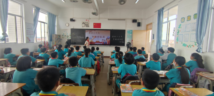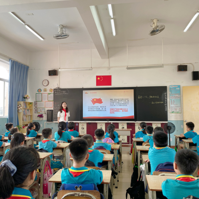歷史是一面鏡子,它照亮現(xiàn)實,也照亮未來。學(xué)習(xí)黨的歷史,了解黨的過去才能看清前進(jìn)的方向?;厥装倌挈h史,百年櫛風(fēng)沐雨,百年砥礪前行,百年歲月崢嶸,中國共產(chǎn)黨帶領(lǐng)中國人民走過了光輝的歷史征程。教室里,隊員們從認(rèn)識旗幟開始了有關(guān)中國共產(chǎn)黨黨史的學(xué)習(xí)。