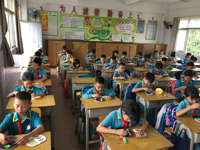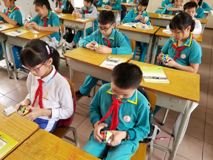 活動(dòng)過(guò)程中各班學(xué)生在任課老師的精心組織下,首先用十分鐘觀看需要?jiǎng)邮植僮骰顒?dòng)的相關(guān)視頻,一二年級(jí)活動(dòng)內(nèi)容是七巧板,三四年級(jí)活動(dòng)內(nèi)容是智慧金字塔,五六年級(jí)活動(dòng)內(nèi)容是魔方??赐暌曨l后,學(xué)生開(kāi)始動(dòng)手研究起手中的“玩具”:一二年級(jí)拼出各種各樣有趣的小動(dòng)物或者活動(dòng)的“人物”;中年級(jí)不斷挑戰(zhàn)金字塔的堆砌級(jí)別,高年級(jí)則翻動(dòng)著手中的魔方。學(xué)生在課堂中動(dòng)手動(dòng)腦,享受想象、實(shí)踐、創(chuàng)新的碩果,真實(shí)感受科技的魅力。課后,學(xué)生的熱情依然不減,他們繼續(xù)在學(xué)習(xí)之余,課間休息時(shí)間探索、提高。