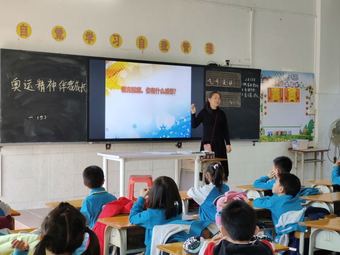 下午的班隊課,各班主任開展了《奧運精神伴我成長》的主題班隊。首先,各班通過短視頻,回顧了北京冬奧會的一些運動員的經(jīng)典時刻。然后引出:什么是奧運精神?讓同學(xué)們交流討論。接著,課件顯示在《奧林匹克憲章》中“奧林匹克主義的原則”條款中有這樣一段話:“每一個人都應(yīng)享有從事體育運動的可能性,而不受任何形式的歧視,并體現(xiàn)相互理解、友誼、團(tuán)結(jié)和公平競爭的奧林匹克精神”,也稱現(xiàn)代奧林匹克精神。最后,各班主任播放了一個以往奧運會的視頻——運動員們?nèi)绾慰朔щy、尊敬對手、堅持完成比賽??赐旰螅瑢W(xué)們都紛紛發(fā)言,表達(dá)了對這些運動員的敬佩之情,同時,也表示要向他們學(xué)習(xí)。