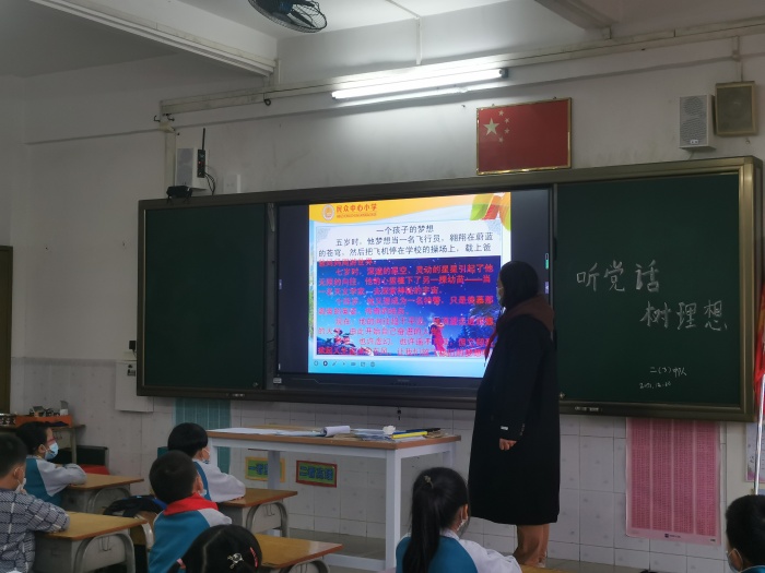 下午的班隊(duì)課,各班中隊(duì)輔導(dǎo)員的精心準(zhǔn)備,主題教育開展非常順利。活動(dòng)當(dāng)中,首先各班中隊(duì)輔導(dǎo)員圍繞“什么是理想?”讓隊(duì)員們了解理想的意義和重要性。接著,引導(dǎo)學(xué)生發(fā)揮想象“理想像什么?”讓學(xué)生暢所欲言。緊接著,通過用《一個(gè)孩子的夢想》的故事和大量數(shù)據(jù)的分析,讓隊(duì)員們討論:如何實(shí)現(xiàn)自己的理想?將來為了實(shí)現(xiàn)理想做怎樣的準(zhǔn)備?現(xiàn)實(shí)生活哪些事情最容易影響我們的意志,原因是什么?該如何處理?讓隊(duì)員們在討論中明白樹立理想的重要性,激發(fā)了全體隊(duì)員樹立理想、刻苦學(xué)習(xí)、報(bào)效祖國的信心和熱情。最后,通過欣賞古人理想的故事和朗讀關(guān)于理想的名人名言等活動(dòng)形式,懂得實(shí)現(xiàn)理想應(yīng)不懼困難,通過不斷的努力奮斗而實(shí)現(xiàn)。