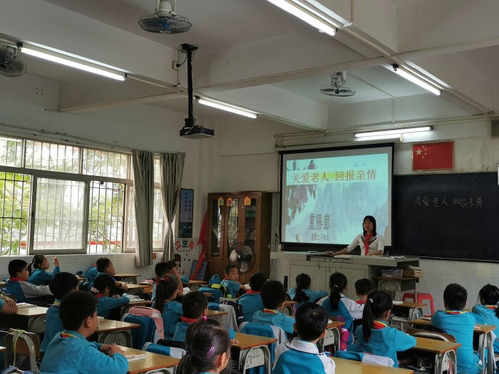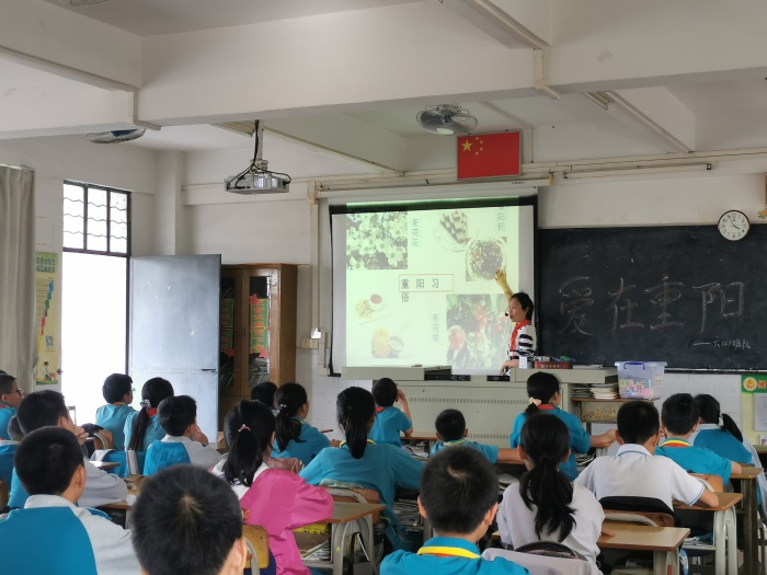 接著,下午第三節(jié)班會(huì)課各班開(kāi)展“關(guān)愛(ài)老人,回報(bào)親情”的主題班會(huì)。班會(huì)上學(xué)生們重溫了王維的詩(shī)《九月九日憶山東兄弟》,然后了解重陽(yáng)節(jié)的神話傳說(shuō),接著由班主任介紹了重陽(yáng)節(jié)的習(xí)俗。