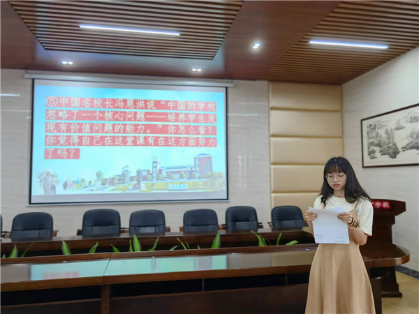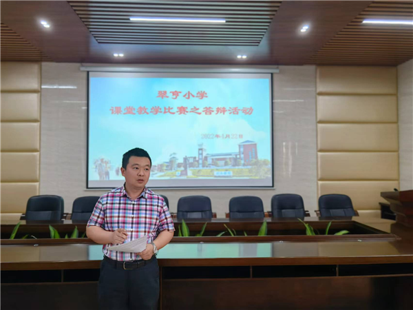 通過老師們的課改成果(課堂教學(xué))展示,看出老師們學(xué)以致用,積極實(shí)踐摸索,比如李威祥老師將上學(xué)期學(xué)習(xí)的柯達(dá)伊手勢運(yùn)用到音高表達(dá)中,姚書心老師將思維導(dǎo)圖運(yùn)用到故事教學(xué)中,馬劍橋老師將信息技術(shù)2.0融進(jìn)體育教學(xué),創(chuàng)新教學(xué)組織方式,方小丹老師運(yùn)用游戲調(diào)動(dòng)寫作積極性……課堂是復(fù)雜的,充滿著豐富的信息,需要教學(xué)團(tuán)隊(duì)進(jìn)行精準(zhǔn)解讀,在交流中發(fā)現(xiàn)問題,尋找解決的方法。4月22日下午4:00,評委和所有參賽選手集中教師會議室進(jìn)行答辯活動(dòng)。魏紅麗主任從學(xué)校實(shí)際情況出發(fā),提出八個(gè)問題,選手通過抽簽決定答辯內(nèi)容,先準(zhǔn)備五分鐘,后輪流上臺答辯。答辯是理性審視課堂的活動(dòng),當(dāng)選手們答辯完畢,魏紅麗主任給大家一一說明問題提出的背景,啟發(fā)思考;易思副校長則主要從“領(lǐng)悟”和“一課一得”兩方面闡釋教學(xué)主張。通過充分的交流展示,參賽教師達(dá)成共識——思維培養(yǎng)是亟需重視的。