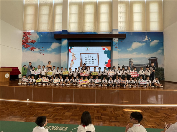 首先,袁少平校長(zhǎng)進(jìn)行了熱情洋溢的新學(xué)期致辭暨思政第一課,回顧暑期重大事件:河南暴雨、疫情防控、東京奧運(yùn)會(huì)、“雙減”政策,感悟華夏子孫面對(duì)困難無所畏懼的精神品質(zhì),勉勵(lì)大家要努力成為新時(shí)代背景下有目標(biāo)、會(huì)學(xué)習(xí)的學(xué)生。緊接著對(duì)剛?cè)雽W(xué)的一年級(jí)新同學(xué)表示歡迎,在袁校長(zhǎng)的諄諄教誨中,一年級(jí)新生喊著整齊激揚(yáng)的口號(hào)亮相。嘹亮的口號(hào)聲,昭示著新的學(xué)期,他們已經(jīng)準(zhǔn)備好成為一名自信的小學(xué)生了。