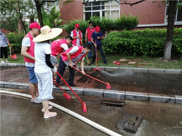 只見(jiàn)天性愛(ài)整潔的袁校長(zhǎng)一馬當(dāng)先,在校門(mén)口附近,用火眼金睛掃瞄周遭環(huán)境,仔細(xì)清理普通人難以發(fā)現(xiàn)的衛(wèi)生死角;黨員、團(tuán)員以及青年教師們清掃日常利用率最高的消防通道,大家用竹掃把將粘在磚石上的陳年老泥刮掃下來(lái),再用消防水管把消防通道沖刷得一塵不染,就算鞋子褲子弄濕了,也毫不退縮;在僑心林附近勞作的女同胞以及學(xué)生小志愿者們不辭勞苦打掃厚厚的落葉,有的老師把僑心林的雜草連根拔起,有的老師拿起鋤頭清除雜草盡管這一帶樹(shù)高草密,蚊子較多,大家也毫無(wú)怨言,掃成一大堆的落葉馬上被燒成了草灰循環(huán)再用,成為校園花草樹(shù)木的養(yǎng)料;平素體弱多病的前輩教師們也沒(méi)有閑著,拿著夾子在勤學(xué)園里尋覓人造垃圾,并一一的夾起來(lái)裝進(jìn)垃圾桶……