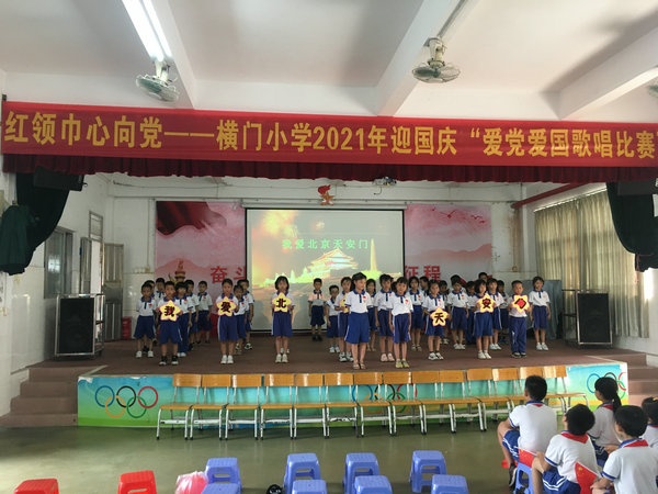 金秋陽光明媚,十月云淡氣爽。普天同慶,為祖國祝福;舉國上下,為母親喝彩。2021年是中國共產(chǎn)黨成立100周年,中華人民共和國成立72周年,為激發(fā)師生們的愛黨愛國熱情,促進(jìn)校園精神文明建設(shè),豐富校園文化生活,扎實(shí)深入開展黨史學(xué)習(xí)教育,開展愛國主義教育,2021年9月30日下午,南朗街道橫門小學(xué)舉辦“學(xué)黨史,跟黨走,紅領(lǐng)巾心向黨——愛黨愛國歌曲歌唱比賽”。