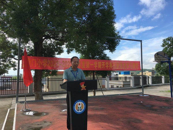 上午8點10分,孩子們精神抖擻地站在國旗前,進行升旗儀式。國旗下,全校師生揮舞著小紅旗,唱響《我和我的祖國》,為建黨百年獻禮。緊接著,盧漪潼老師帶領(lǐng)大家齊唱校歌《啟航》,一同展現(xiàn)新學(xué)年朝氣蓬勃的面貌。隨后,橫門小學(xué)黨支部書記、少工委主任林國信校長為同學(xué)們送上開學(xué)寄語,他還從防疫、尊師、愛校、勤學(xué)、守紀四個方面對同學(xué)們提出相應(yīng)的要求。