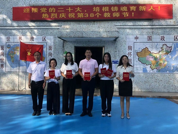 2022年9月9日上午,全體師生精神抖擻地匯聚在學(xué)校禮堂前面。學(xué)校黨支部書記、少工委主任林國信校長(zhǎng)進(jìn)行了熱情洋溢的致詞,向辛勤耕耘的老師們致以節(jié)日的祝賀和衷心的感謝,勉勵(lì)教師們認(rèn)真學(xué)習(xí)貫徹習(xí)近平總書記重要講話精神,全面貫徹黨的教育方針,做有理想信念、有道德情操、有扎實(shí)學(xué)識(shí)、有仁愛之心的“四有”好老師。橫門小學(xué)有一批優(yōu)秀教師,他們師德高尚,愛生如子,甘于奉獻(xiàn),治學(xué)有方,獲得市、街道優(yōu)秀教師等榮譽(yù)稱號(hào),林校長(zhǎng)介紹了他們的先進(jìn)事跡,并為他們進(jìn)行頒獎(jiǎng)。