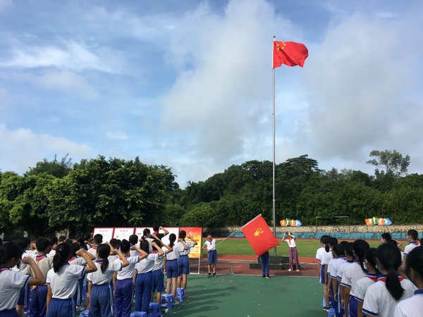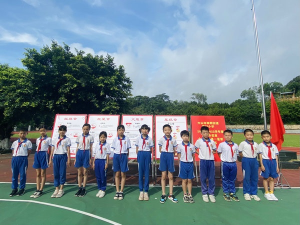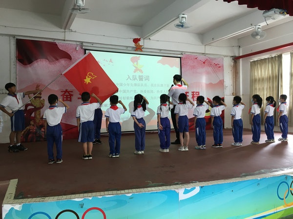 2022年5月31日下午,橫門小學落實分批入隊工作,為2022年第一批新隊員舉行了入隊儀式。在星星火炬旗幟下,一年級第一批共12名新隊員光榮地加入了中國少年先鋒隊。橫門小學黨支部書記、校長兼少工委主任林國信,還有其它少工委委員參加了該活動。在飄揚的隊旗下,在星星火炬的指引中,全體同學高唱《中國少年先鋒隊隊歌》。嘹亮的歌聲,唱出了每位同學心中的自豪與驕傲。隨后少工委辦公室主任、大隊輔導員鄭達明老師宣讀組建一年級少先隊組織的決定和入隊名單。緊接著,優(yōu)秀少先隊員代表上臺給一年級新隊員授紅領巾。在大隊輔導員的組織下,少先隊員們在隊旗下莊嚴宣誓,一字一句鏗鏘有力,充分展示了作為社會主義事業(yè)接班人的信心和決心。宣誓后,大隊輔導員鄭達明老師為一年級新建中隊授中隊旗,少工委主任林校長為中隊輔導員頒發(fā)聘書。新隊員一(1)中隊李佳欣隊員代表發(fā)言,表達對成為一名少先隊員的驕傲之情,爭做一名新時代好隊員?;顒幼詈?,少工委主任林國信勉勵新隊員積極行動起來,從現(xiàn)在開始用自己的實際行動為紅領巾增光,要永遠聽黨話、跟黨走,從小學先鋒,長大做先鋒,爭當新時代好隊員。