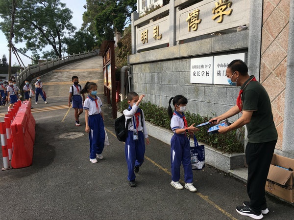為了給兒童們慶祝節(jié)日,橫門小學少工委主任林校長以及少工委副主任郭培輝一大早就站在校門口迎接少先隊員們的到來,給他們送上節(jié)日的禮物。