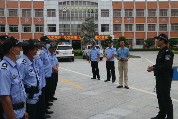 2020年10月13日上午9時(shí),云衢小學(xué)正式舉行防暴應(yīng)急演練。指導(dǎo)本次活動(dòng)的領(lǐng)導(dǎo)和專業(yè)人員有:南朗鎮(zhèn)巡警大隊(duì)黃旭暉副大隊(duì)長、南朗鎮(zhèn)治安大隊(duì)黃雨隊(duì)長及王宇升隊(duì)長。在演練活動(dòng)前黃隊(duì)長首先為保安人員介紹警棍、辣椒水噴霧、金屬探測器、身份登記儀使用方法。