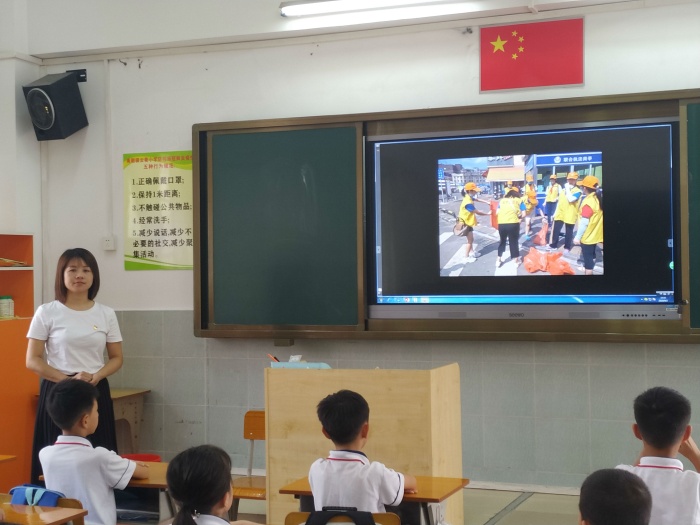 活動伊始,全體觀看了暑假期間云衢小學(xué)師生創(chuàng)建文明城市志愿活動,一個(gè)個(gè)忙碌的身影,一雙雙熱情的雙手,孩子們被屏幕中奉獻(xiàn)的精神、文明的舉動感動著。