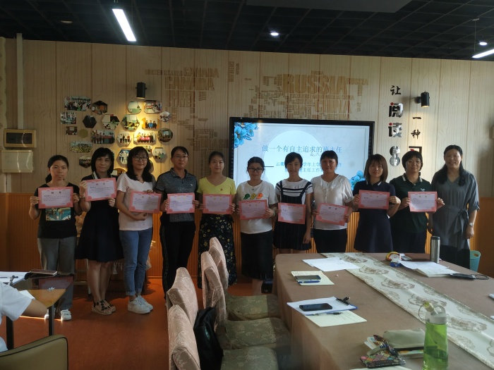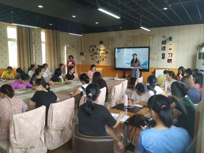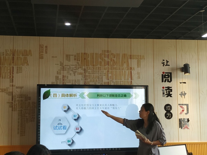 阮副校長從分享自己閱讀《提升班主任領(lǐng)導(dǎo)力》這本書開始,采用拋磚引玉的方法,激勵(lì)老師們?nèi)プx書,鼓勵(lì)班主任們做一個(gè)有自主追求的班主任。她先對(duì)這本書進(jìn)行了具體的解析,然后用判斷對(duì)錯(cuò)的辦法讓班主任判斷此種行為是對(duì)或者錯(cuò),還用具體的案例、具體的處理方法,讓班主任們分別進(jìn)行評(píng)價(jià),也總結(jié)出幾種搜集素材的方法,讓班主任們受益匪淺。