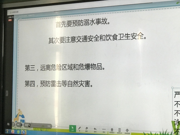 為進(jìn)一步加強(qiáng)學(xué)生暑假安全,增強(qiáng)廣大學(xué)生的安全意識(shí),7月17日上午,云衢小學(xué)各班召開(kāi)了安全教育班會(huì)課并開(kāi)展假期系列安全教育活動(dòng)。