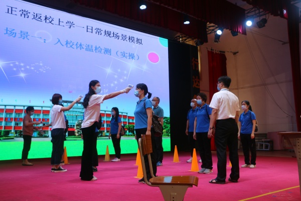 下午兩點,云衢小學全體教職員工集中學校藝體中心。阮連鳳副組長首先講解了各個場景的操作要點,共五個場景:入校體溫檢測場景;師生進入學校后人員分流場景;教學區(qū)作息場景;學生用餐場景。學生異常情況處置。演練活動開始,各小組成員迅速到位,做好突發(fā)事件應急準備工作。所有人員按照既定預案,行動快速,配合密切,分工明確,有條不紊,準確高效地完成了此次演練任務。