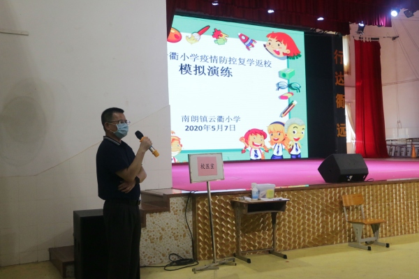為進一步做好新冠肺炎疫情防控工作,確保學校開學后良好的教育教學秩序和師生的健康安全,在四月中旬開展第一次演練的基礎上,2020年5月7日下午,云衢小學再次開展復學返校疫情防控演練,進一步提升應對突發(fā)事件的處置能力。本次模擬演練活動由領導小組副組長阮連鳳主持,全體教職員工參加本次活動。衛(wèi)生與健康副校長程明照醫(yī)生及鎮(zhèn)教指中心李嵐老師到場指導。