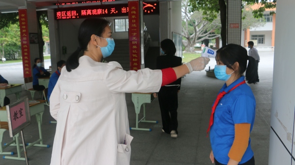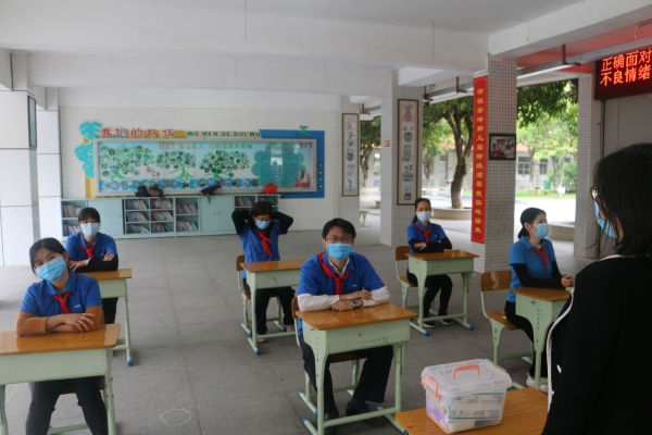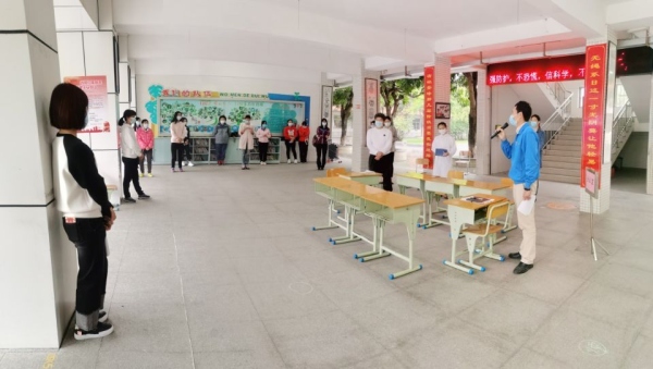 在阮連鳳副組長的科學(xué)指導(dǎo)下,學(xué)校疫情防控領(lǐng)導(dǎo)小組及各教職工黨員同志努力下,學(xué)校進行了正常返校上學(xué)一日常規(guī)場景模擬:入校體溫檢測場景;師生進入學(xué)校后人員分流場景;教學(xué)區(qū)作息場景; 學(xué)生用餐場景。