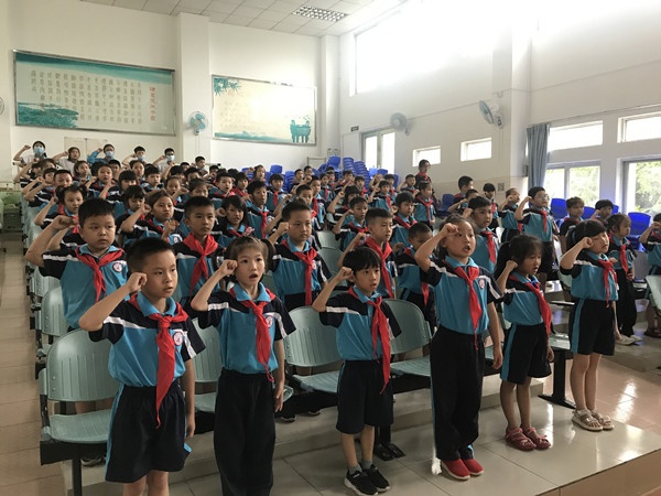 最后,大隊(duì)輔導(dǎo)員領(lǐng)呼“時(shí)刻準(zhǔn)備著!”,鏗鏘有力的呼號(hào)中,隊(duì)員們堅(jiān)定的眼神定會(huì)在星星火炬的指引下認(rèn)真學(xué)習(xí)、不畏艱難。入隊(duì)儀式在嘹亮的退旗曲中落下帷幕。