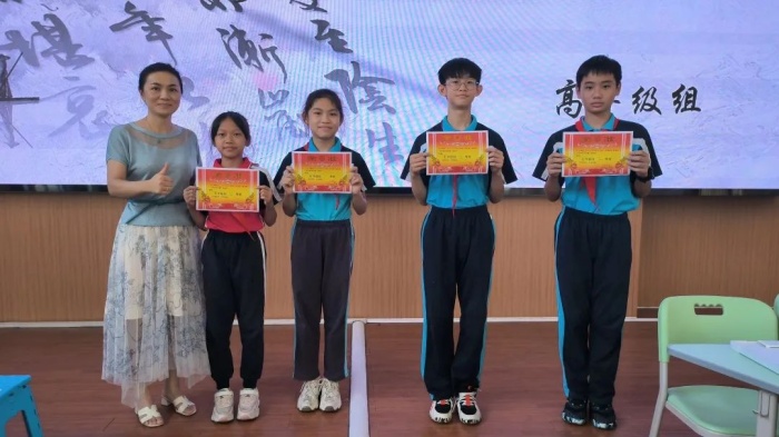 低年級(jí)的經(jīng)典古詩(shī)文誦讀比賽中,選手聲音洪亮,吐字清晰,抑揚(yáng)頓挫地誦讀了《江南》《登鸛雀樓》等詩(shī)篇,得到了觀眾們的熱烈掌聲。集體朗誦環(huán)節(jié)中,孩子們服裝發(fā)飾上精心準(zhǔn)備,誦讀中動(dòng)作整齊劃一,配以吟誦的方式表演,獲得了在座的評(píng)委和同學(xué)們的一致好評(píng)。