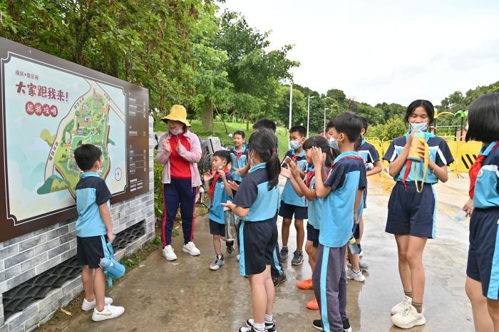 一路上縈繞著孩子們的歡聲笑語,老師和學生們甚是憧憬。到達公園后,同學們首先聆聽了湯璇萍副主任對寮后村歷史文化的詳細介紹。