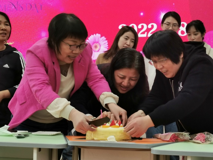 大課間時(shí)間,老師們集中多媒體室,全體男老師在鄧定波主任和梁永兵副主任的帶領(lǐng)下,給女老師們一個(gè)又一個(gè)的驚喜。先是每個(gè)男老師為全體女老師送上誠(chéng)摯的祝福,祝福每一位女教師永葆青春美麗,笑顏如花、身體健康;緊接著,全體男老師一起為良小的女教師們獻(xiàn)上歌曲《終身美麗》,感動(dòng)著現(xiàn)場(chǎng)的每一位女老師。最后男老師們還準(zhǔn)備了兩個(gè)大大的節(jié)日蛋糕,更是讓臺(tái)下的女教師們驚喜連連,激動(dòng)歡呼,大家一起許愿一起吹蠟燭,一起分享這愛(ài)的美食……現(xiàn)場(chǎng)洋溢著濃厚的節(jié)日氛圍。