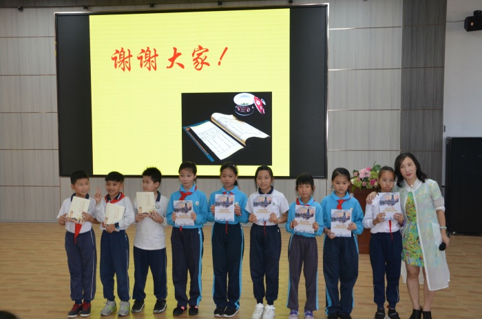接著進行的是贈書環(huán)節(jié),南區(qū)文學(xué)藝術(shù)界聯(lián)合會主席陳啟明同志為良都小學(xué)代表陳莉江副主任贈送《大美良都》等三本具有南區(qū)文化特色的精美書籍,緊接著胡老師也給愛閱讀的孩子們贈送自己的書籍,鼓勵孩子們在閱讀的海洋里繼續(xù)徜徉。