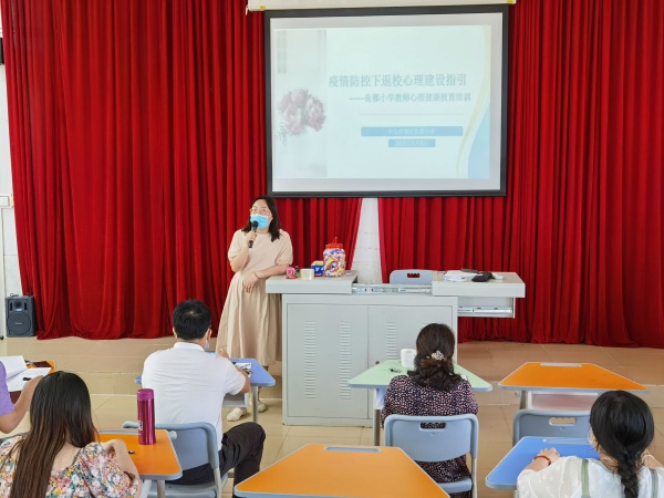 會(huì)上,吳麗歡主任首先對(duì)全體教師進(jìn)行了主題為“疫情防控下返校心理建設(shè)指引”的心理健康教育培訓(xùn)。她帶領(lǐng)所有老師溫習(xí)梁劍玲老師的講座《同心育人 用責(zé)守護(hù)》,從教師的自我關(guān)懷、各類(lèi)學(xué)生的跟進(jìn)輔導(dǎo)、具體問(wèn)題的心理調(diào)適等方面進(jìn)行詳細(xì)的講述,同時(shí)就老師發(fā)現(xiàn)心理異常學(xué)生應(yīng)該如何處理的步驟進(jìn)行了非常清晰的講解。吳麗歡主任提出,復(fù)學(xué)之后,學(xué)生的心理健康應(yīng)擺在第一位,教師要適當(dāng)組織學(xué)生開(kāi)展團(tuán)康活動(dòng),用愛(ài)心和責(zé)任心迎接學(xué)生;另外,她還提出學(xué)生心理健康教育不僅僅是班主任、心理老師的工作,每位科任老師都應(yīng)將學(xué)生心理健康教育放在重要位置。