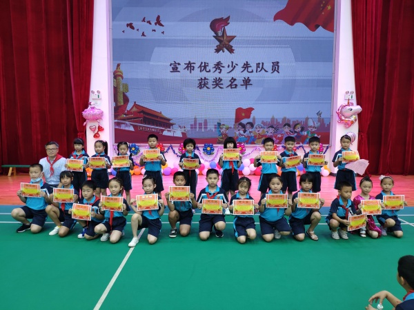 上午10點,全校師生在體育館開展“迎接少代會、爭做好隊員”“六一”主題教育活動?;顒又?,隊員們匯報了“廣東紅領巾致敬逆行先鋒”活動成果,有的隊員表演了《預防病毒拍手歌》,有的隊員展示了“同心戰(zhàn)疫”繪畫作品,接著進行了最激動人心的“抗疫小衛(wèi)士章” 頒章活動以及同學們期待已久的“六一”文藝匯演。
