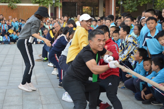 下午的趣味拔河比賽將這次體育節(jié)推向高潮,整個(gè)校園里吶喊聲、掌聲、笑聲、獲勝者的歡呼聲此起彼伏。?老師們也積極參與,以年級(jí)組為單位分別展開對(duì)抗,一眼望去每一組都顯得雄心勃勃、斗志昂揚(yáng)。當(dāng)比賽的哨聲一響,賽場(chǎng)上的老師們齊聲喊著“一二,一二”,雙手緊握長(zhǎng)繩,憋足了勁拼命往后拉,賽場(chǎng)旁邊的老師們富有節(jié)奏的吶喊聲、加油聲充斥在比賽場(chǎng)地上。夕陽(yáng)西下,運(yùn)動(dòng)會(huì)在歡呼聲中落下了帷幕。