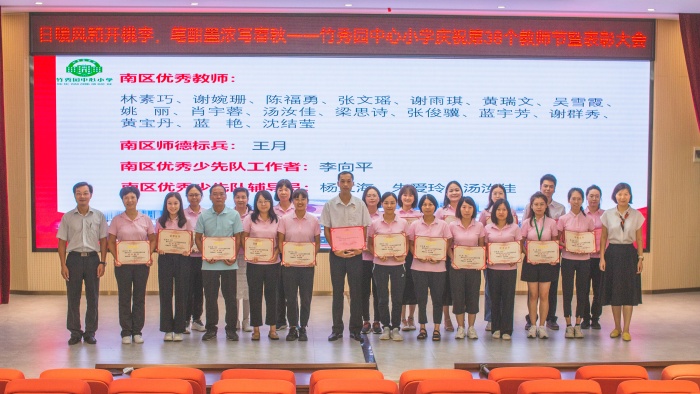 吳翹楚書記一行參觀了學(xué)校校園及教學(xué)環(huán)境,并為優(yōu)秀教職工頒發(fā)榮譽(yù)證書,與優(yōu)秀教師代表合影留念。吳翹楚書記詳細(xì)詢問了退休教師謝群秀的工作和生活情況,給她送上鮮花,勉勵(lì)她不忘初心、牢記使命,繼續(xù)為竹秀園中心小學(xué)教育事業(yè)發(fā)展作出積極貢獻(xiàn)。
