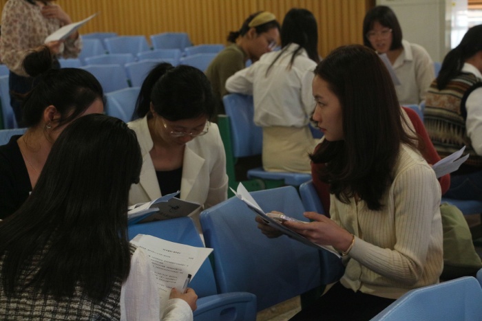 兩節(jié)課后,工作坊的成員們先分小組進行評課交流,接著,小組派代表發(fā)言。通過課例觀摩與評課交流,學員們在專業(yè)知識上相互學習,取長補短,呈現(xiàn)了一場思維碰撞的盛宴。