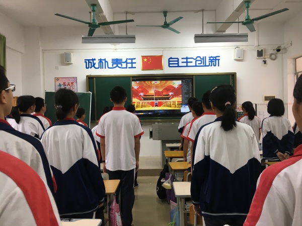 首先,舉行莊嚴(yán)的升旗儀式,全校師生奏唱國(guó)歌,集體背誦二十四字社會(huì)主義核心價(jià)值觀和學(xué)校校訓(xùn)。接著進(jìn)行主題教育,首先讓學(xué)生認(rèn)識(shí)生命不僅屬于自己,也屬于家庭。父母含辛茹苦地孕育我們,我們承載著家庭、父母的希望,我們一出生,家人就開始為我們付出辛勤的勞動(dòng)。所以,我們更應(yīng)該珍惜自己的生命!接著圍繞“何謂校園欺凌?”、 “校園欺凌的特點(diǎn) ”、“校園欺凌的危害”、“如何應(yīng)對(duì)欺凌?”展開學(xué)習(xí),并學(xué)習(xí)了《廣東省最新的校園欺凌處分條例》 ,讓學(xué)生認(rèn)識(shí)了校園欺凌的種類和事件的處置。并列舉了全國(guó)各地近期以來發(fā)生的大量鮮活案例,深入淺出地分析了校園欺凌事件產(chǎn)生的原因及危害后果。并結(jié)合個(gè)別同學(xué)身上出現(xiàn)的不良行為進(jìn)行剖析,從而告誡學(xué)生,對(duì)校園欺凌事件要采取零容忍的態(tài)度,不但自身不能觸犯欺凌行為,還要懂得保護(hù)自己,采取正當(dāng)方式和欺凌行為作斗爭(zhēng)。