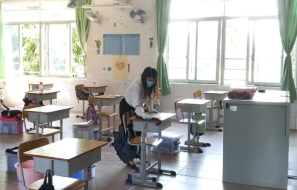從4月20日開始,老師們除了正常的網(wǎng)上教學(xué)外,還要嚴格按上級要求回校參加清潔等返校的各項準(zhǔn)備工作。4月27日開學(xué)后,全體老師都參與了錄課、上課、組織考試、負責(zé)消毒、看管學(xué)生洗手吃飯、跟蹤上報走讀學(xué)生放學(xué)后回家時間等工作。老師們?yōu)榱送瓿射浾n,白天沒有時間,就晚上加班錄制。課堂上為幫助部分網(wǎng)課效率不高學(xué)生,老師們采用的是錄播課和自己講授結(jié)合的教學(xué)模式,設(shè)法提高課堂的針對性和有效性。班主任的工作量更是成倍增長,從學(xué)生進校門的那一刻起,幾乎要全程陪伴。出勤情況、體溫測量、課室消毒、有序午晚餐、每天的體育鍛煉、走讀生網(wǎng)格管理……盡管老師們的付出比平時多很多,但他們從不埋怨,總是默默的把這些平凡的事情一一做好。